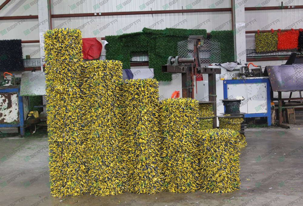 Bei Hectograss bieten wir einen speziellen Graszaun für diejenigen, die nach einer ästhetisch ansprechenden Lösung suchen, die mit der Natur harmoniert. Der Hectograss-Graszaun ist ein einzigartiger Maschentyp, der durch die Kombination von Kunstgras und feuerverzinkten Drähten entsteht. Er wird durch das Zusammenpressen von 100 Mikrometer dickem, 80 Mikrometer breitem, UV-geschütztem, geschnittenem PVC zwischen zwei 1,6 mm feuerverzinkten Drähten hergestellt